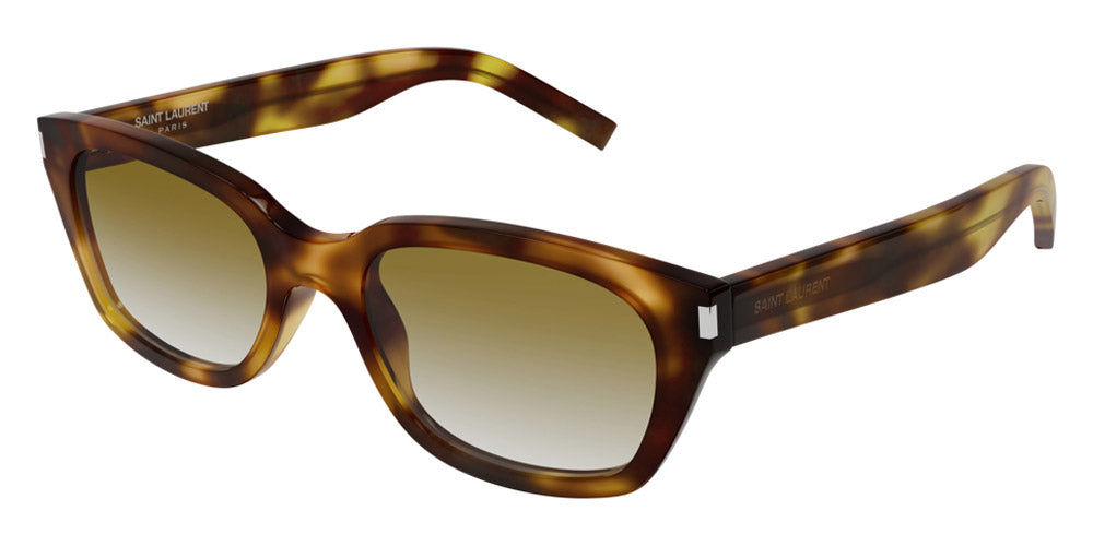 SL 522 Sunglasses by Saint Laurent. Frame Material: Acetate, Frame Shape: Rectangle, Frame Type: Full Rim, Color: Black / Gray, Green / Green, Havana / Brown Gradient, Yellow / Black, Size: 54-19-145. The famous French brand Saint Laurent creates glasses for women and men and deservedly receives recognition after each release and presentation at the fashion shows. The manufacturer considers the collection of sunglasses and eyeglasses as part of the company concept, they are perfectly combined with clothes, shoes, and other products released under the name of Saint Laurent. The frames are made of premium quality plastic or metal, and thanks to this solution, each model of the brand is designed for many years of use. Daring decisions and ideas are implemented in these accessories which have gained popularity among stylish people around the world. Yves Saint Laurent turned high fashion upside down, bringing into it feminine sensuality and masculine seductiveness.