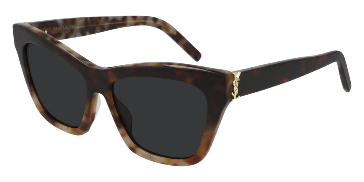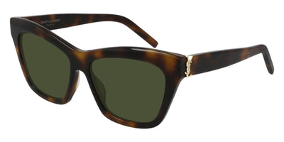 SL M79 Sunglasses by Saint Laurent. Frame Material: Acetate, Frame Shape: Cat-Eye, Frame Type: Full Rim, Color: Black / Silver Mirrored, Havana / Black, Havana / Green, Size: 56-15-140. The famous French brand Saint Laurent creates glasses for women and men and deservedly receives recognition after each release and presentation at the fashion shows. The manufacturer considers the collection of sunglasses and eyeglasses as part of the company concept, they are perfectly combined with clothes, shoes, and other products released under the name of Saint Laurent. The frames are made of premium quality plastic or metal, and thanks to this solution, each model of the brand is designed for many years of use. Daring decisions and ideas are implemented in these accessories which have gained popularity among stylish people around the world. Yves Saint Laurent turned high fashion upside down, bringing into it feminine sensuality and masculine seductiveness.