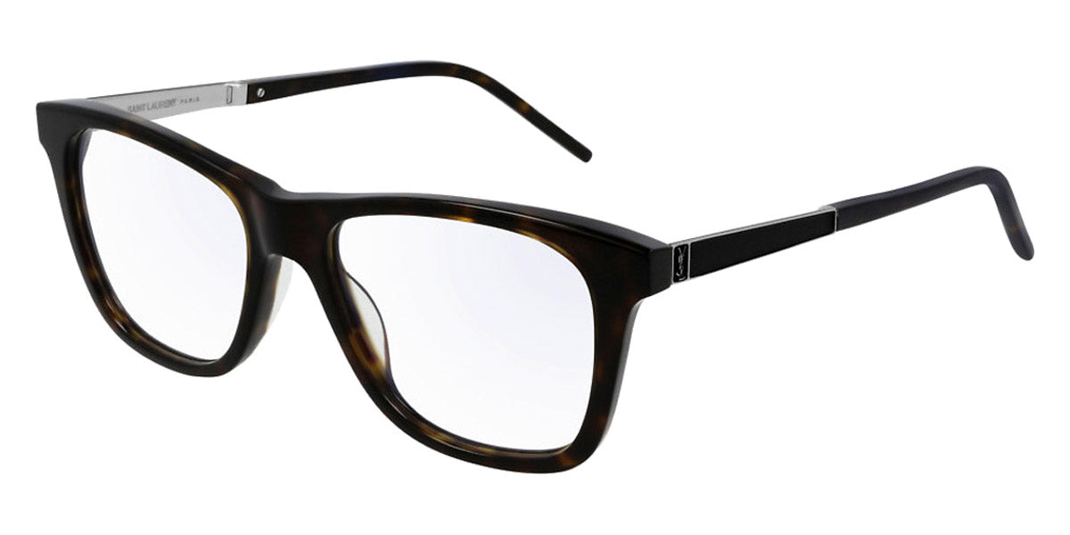 SL M83 Eyeglasses by Saint Laurent. Frame Material: Acetate, Frame Shape: Rectangle, Frame Type: Full Rim, Color: Gold, Silver 001, Silver 002, Size: 52-17-145. The famous French brand Saint Laurent creates glasses for women and men and deservedly receives recognition after each release and presentation at the fashion shows. The manufacturer considers the collection of sunglasses and eyeglasses as part of the company concept, they are perfectly combined with clothes, shoes, and other products released under the name of Saint Laurent. The frames are made of premium quality plastic or metal, and thanks to this solution, each model of the brand is designed for many years of use. Daring decisions and ideas are implemented in these accessories which have gained popularity among stylish people around the world. Yves Saint Laurent turned high fashion upside down, bringing into it feminine sensuality and masculine seductiveness.