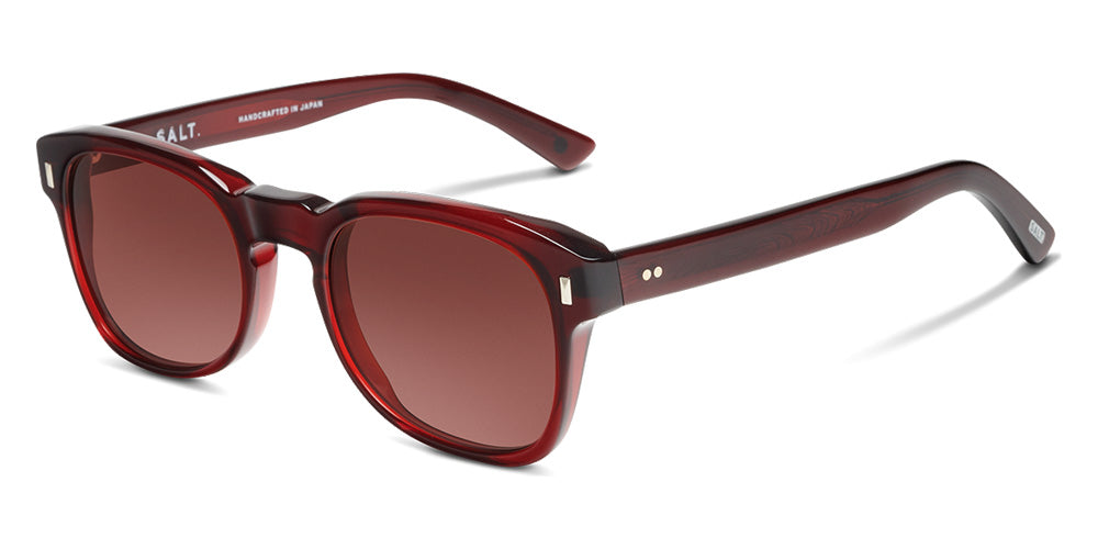 COOLIDGE Sunglasses by SALT. Color: Black/Glass Deep Brown, Redwood/Glass Crimson, Toasted Toffee/CR39 Denim Gradient, Whiskey/Glass Amber Half Flash Lens, Size: 55-22-145. Inspired by Nature’s effortless beauty, SALT. glasses are head-turning pieces-of-art, refined and elegant. Manufactured in Japan from the best-in-class materials to the highest standards, they are guaranteed to last for generations. Designed by opticians, the glasses are paired with the premium-grade SALT.’S proprietary lens that is the clearest lens in the industry. The retro-inspired shape goes with everything and will make any outfit—yes, even your workout clothing—instantly chic. Utilizing modern technologies and proven materials, this iconic SALT. frame offers the perfect blend of style, functionality, and optical performance.