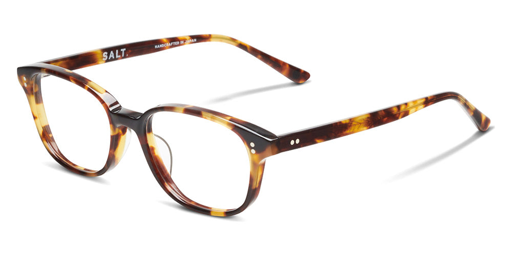 HAYES 48 Eyeglasses by SALT. Color: Antique Leaves, Black, Indigo Oak, Rose Oak, Size: 48-17-143. Inspired by Nature’s effortless beauty, SALT. glasses are head-turning pieces-of-art, refined and elegant. Manufactured in Japan from the best-in-class materials to the highest standards, they are guaranteed to last for generations. Designed by opticians, the glasses are paired with the premium-grade SALT.’S proprietary lens that is the clearest lens in the industry. The retro-inspired shape goes with everything and will make any outfit—yes, even your workout clothing—instantly chic. Utilizing modern technologies and proven materials, this iconic SALT. frame offers the perfect blend of style, functionality, and optical performance.
