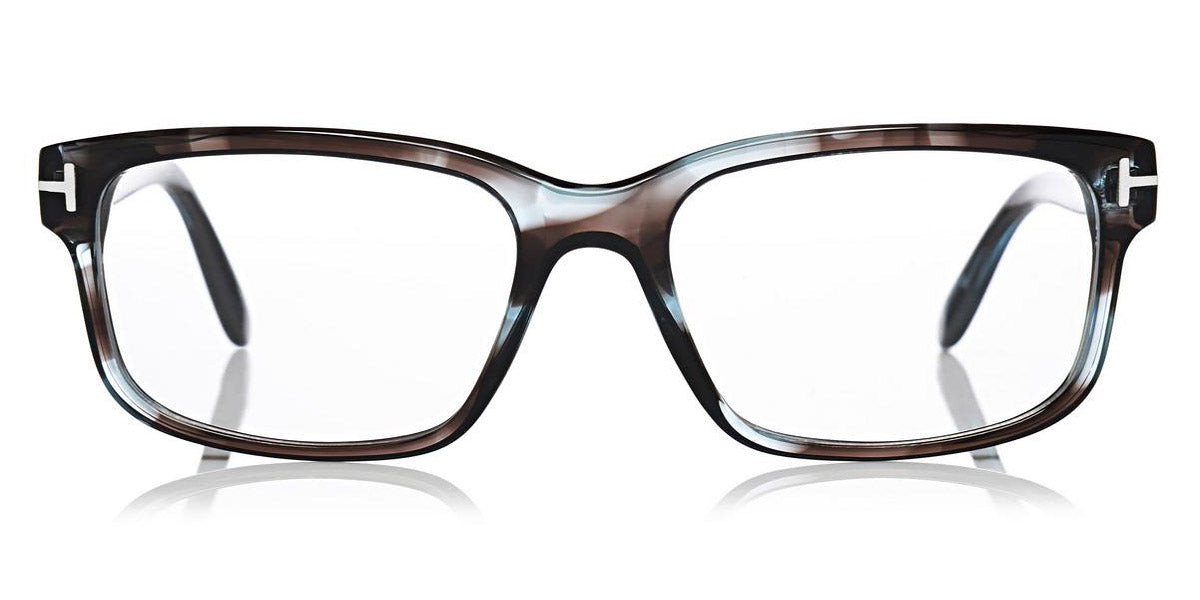 FT5313 Eyeglasses by Tom Ford. Color: Grey / Light Blue Melange, Matte Havana, Shiny Classic Havana W. Blue Inner Rims, Matte Black, Shiny Black. Size: 55-17-145.