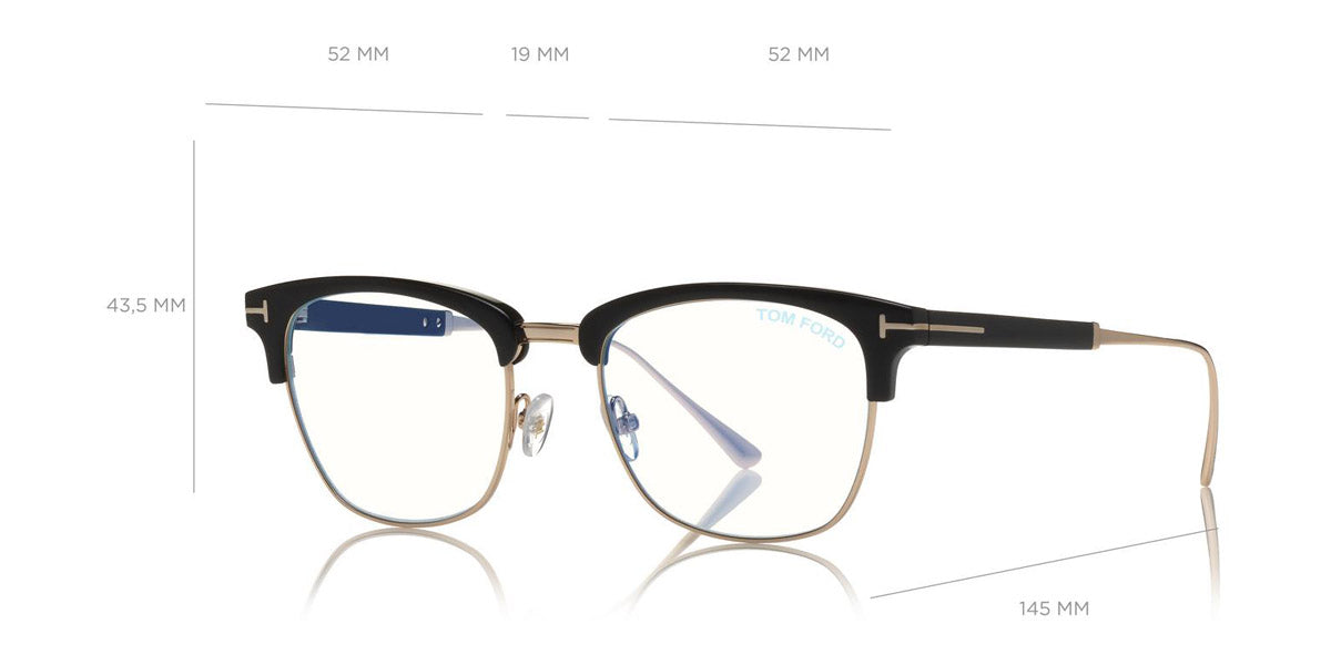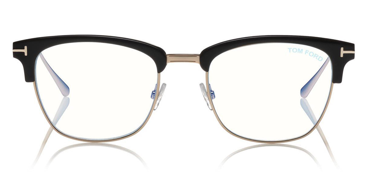 FT5590-F-B Eyeglasses by Tom Ford. Color: Shiny Black / Shiny Rose Gold / Blue Block Lenses, Shiny Classic Dark Havana / Shiny Dark Ruthenium / Blue Block Lenses, Matte Black / Shiny Dark Ruthenium / Blue Block Lenses. Size: 52-19-145.