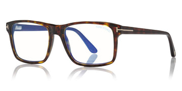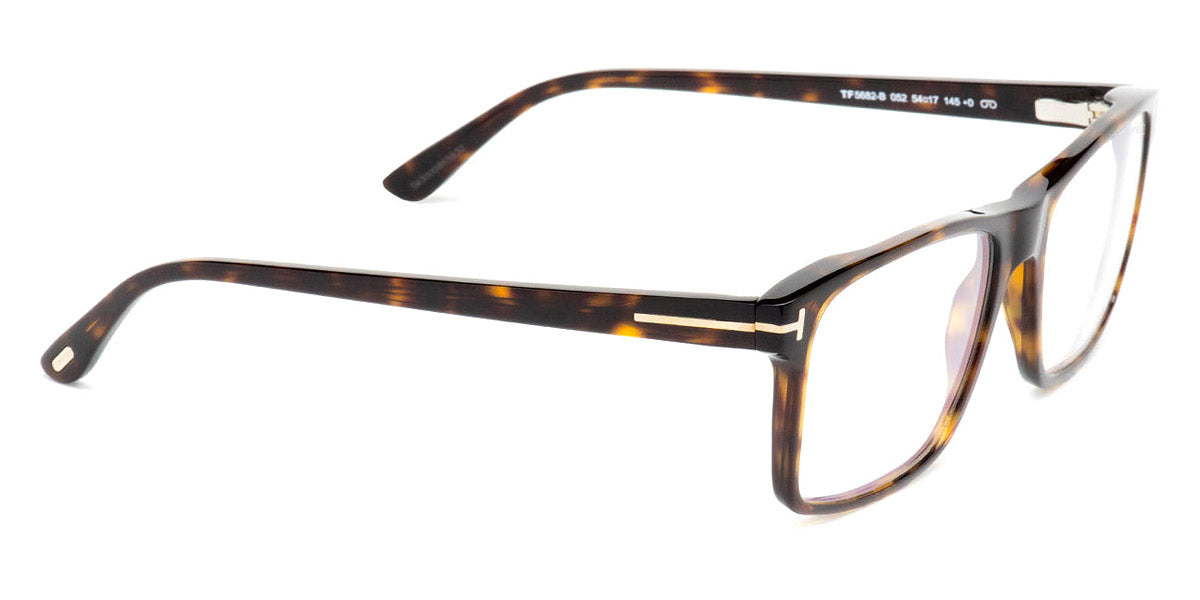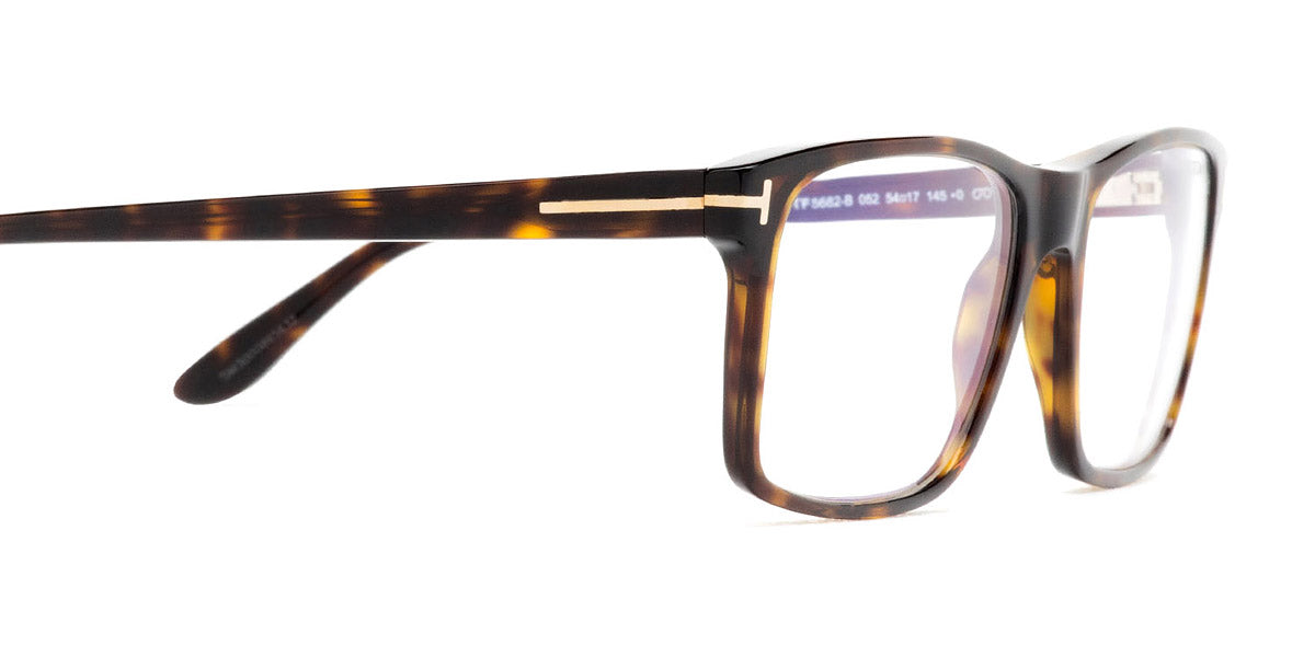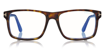 FT5682-B Eyeglasses by Tom Ford. Color: Shiny Classic Dark Havana / Blue Block Lenses W. Roviex Clip On Lenses, Shiny Black / Blue Block Lenses W. Blue Clip On Lenses. Size: 54-17-145.