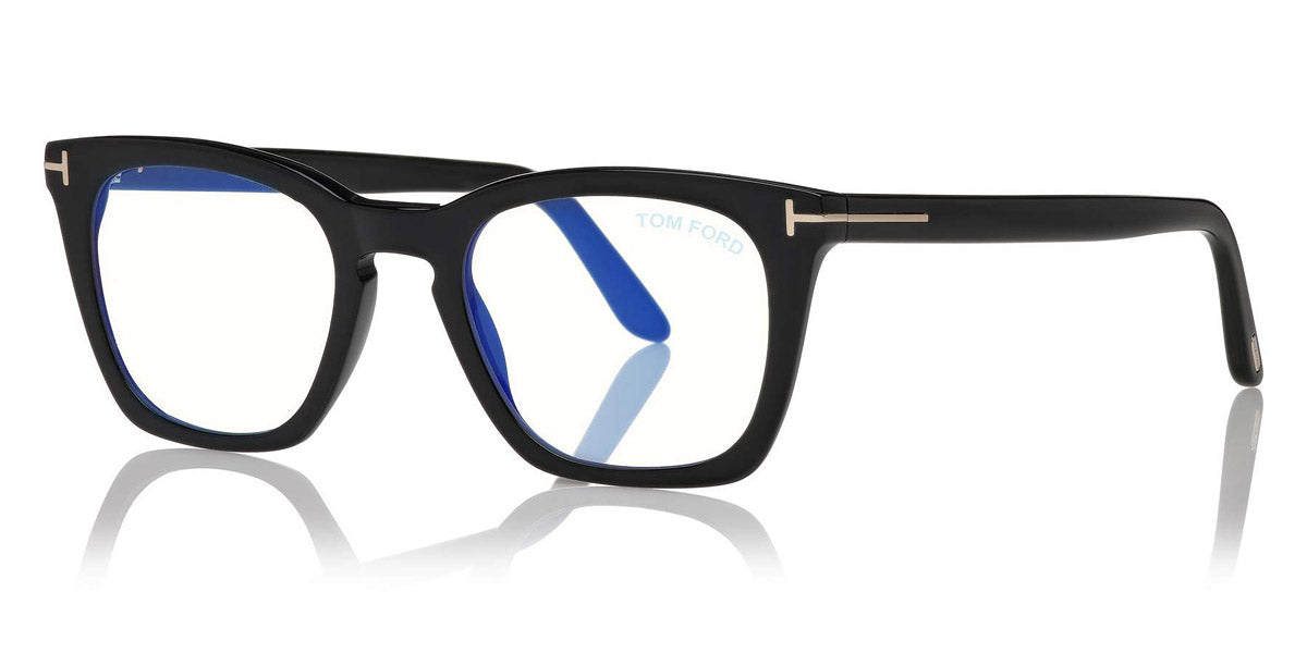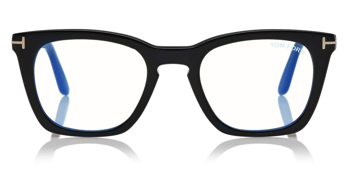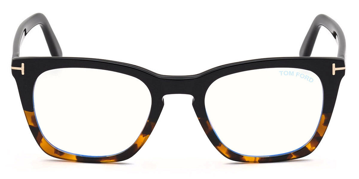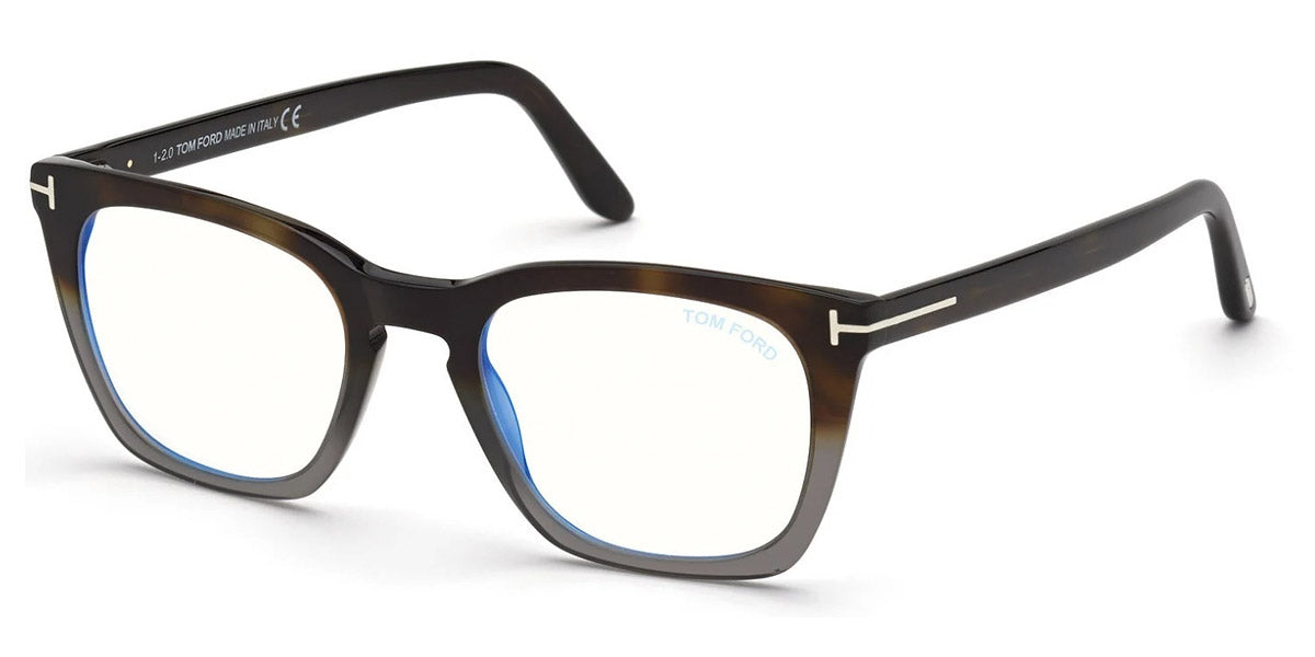 FT5736-B Eyeglasses by Tom Ford. Color: 052 - Shiny Dark Havana, Shiny Rose Gold t" Logo / Blue Block Lenses", 055 - Shiny Havana To Grey, Shiny Palladium t" Logo / Blue Block Lenses", 001 - Shiny Black, Shiny Rose Gold t" Logo / Blue Block Lenses", 005 - Shiny Black And Vintage Havana, t" Logo / Blue Block Lenses". Size: 50-20-145.