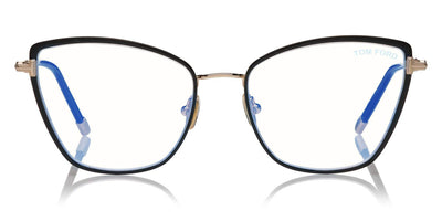 Tom Ford® FT5740-B FT5740-B 001 54 - 001 - Black Enamel, Shiny Rose Gold, Shiny Black, t" Logo/blue Block Lenses" Eyeglasses