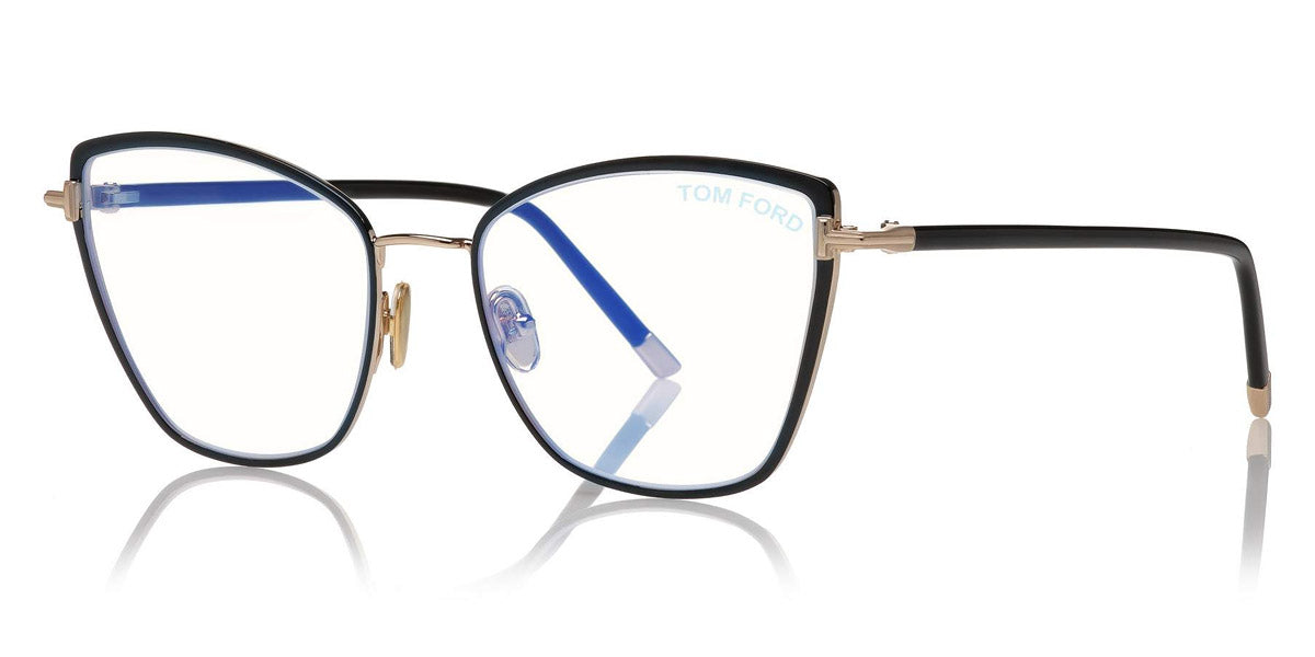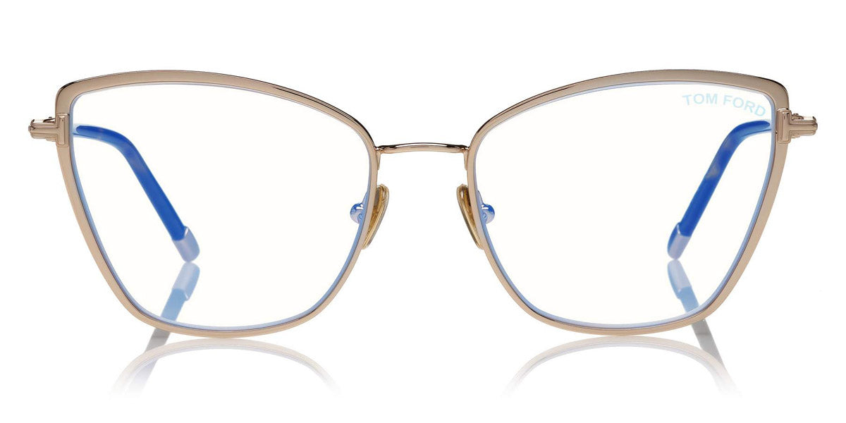 FT5740-B Eyeglasses by Tom Ford. Color: Shiny Palladium/Vintage Rose Havana/T Logo, 001 - Black Enamel, Shiny Rose Gold, Shiny Black, t" Logo/blue Block Lenses", 048 - Brown Enamel, Rose Gold, Blonde Havana, t" Logo / Blue Block Lenses", 028 - Shiny Rose Gold, Classic Dark Havana, t" Logo / Blue Block Lenses". Size: 54-17-140.