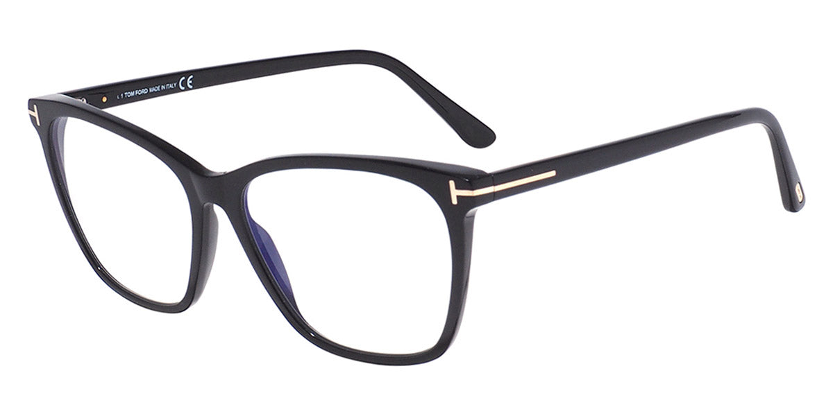 Tom Ford® FT5762-B FT5762-B 001 55 - 001 - Shiny Black, t" Logo / Blue Block Lenses" Eyeglasses