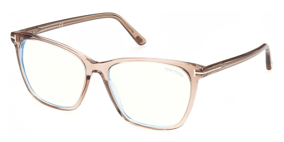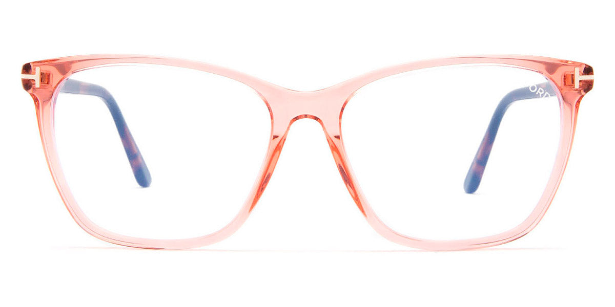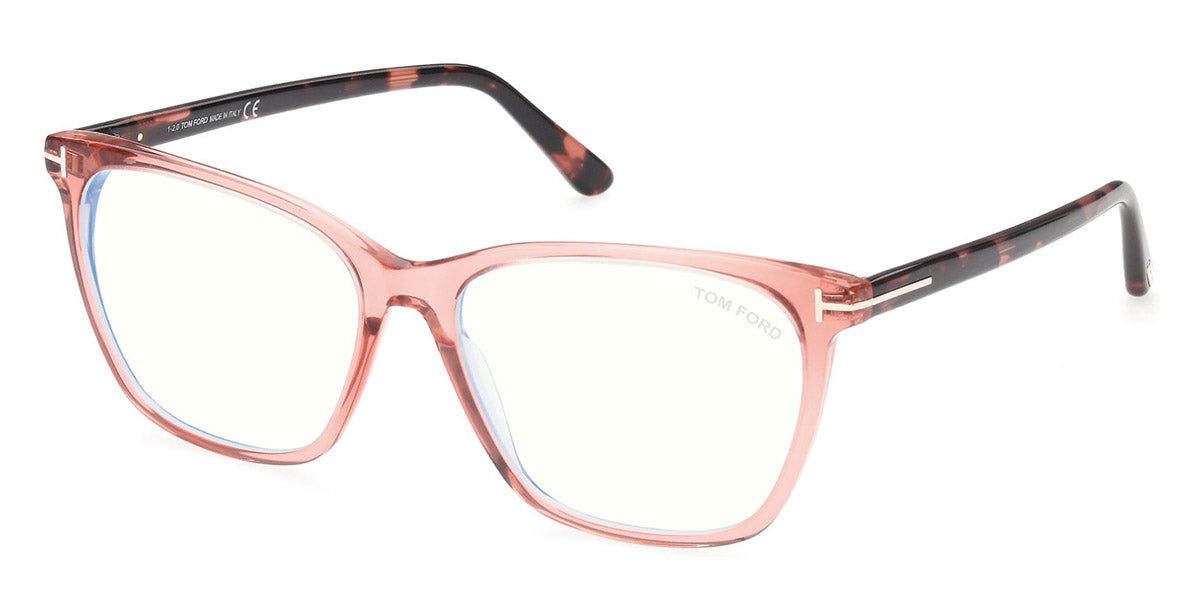 FT5762-B Eyeglasses by Tom Ford. Color: 074 - Shiny Transp Coral, Pink Grapefruit Havana, t" Logo/blue Block Lenses", 045 - Shiny Rose Champagne, t" Logo / Blue Block Lenses", 001 - Shiny Black, t" Logo / Blue Block Lenses", 052 - Shiny Classic Dark Havana, t" Logo / Blue Block Lenses". Size: 55-15-140.