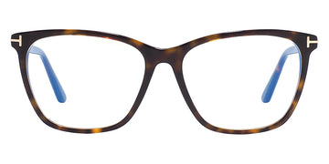 Tom Ford® FT5762-B FT5762-B 052 55 - 052 - Shiny Classic Dark Havana, t" Logo / Blue Block Lenses" Eyeglasses