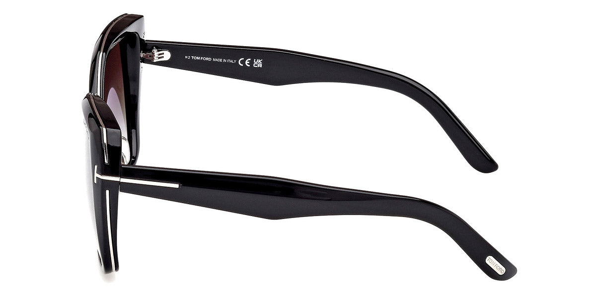 Plum FT1223 Sunglasses by Tom Ford. Material: Injected, Color: Shiny Black / Gradient Smoke, Shiny Black, Blonde Havana / Gradient Brown, Size: 58-19-140