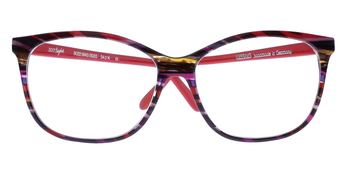 3017 L Eyeglasses by Wissing . Boldness and exclusiveness are those distinguishing features that have always characterized Wissing. The reputed German brand creates one-off, unmistakable pieces of art, handcrafted from multi-layer acetate, which means endless possibilities for eyewear design. Each Wissing frame features a distinctive shape and comes offered in bright, eye-catching color combinations.