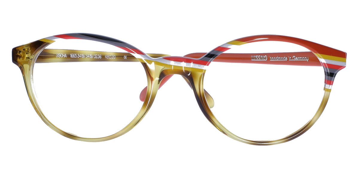 3190 HA Eyeglasses by Wissing . Boldness and exclusiveness are those distinguishing features that have always characterized Wissing. The reputed German brand creates one-off, unmistakable pieces of art, handcrafted from multi-layer acetate, which means endless possibilities for eyewear design. Each Wissing frame features a distinctive shape and comes offered in bright, eye-catching color combinations.