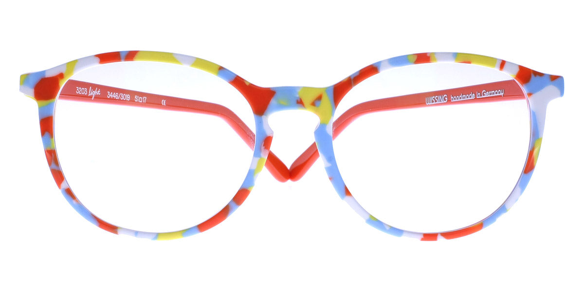 3203 L Eyeglasses by Wissing . Boldness and exclusiveness are those distinguishing features that have always characterized Wissing. The reputed German brand creates one-off, unmistakable pieces of art, handcrafted from multi-layer acetate, which means endless possibilities for eyewear design. Each Wissing frame features a distinctive shape and comes offered in bright, eye-catching color combinations.