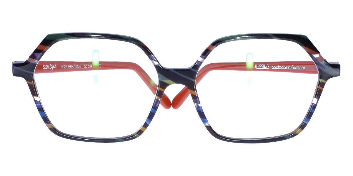 3225 L Eyeglasses by Wissing . Boldness and exclusiveness are those distinguishing features that have always characterized Wissing. The reputed German brand creates one-off, unmistakable pieces of art, handcrafted from multi-layer acetate, which means endless possibilities for eyewear design. Each Wissing frame features a distinctive shape and comes offered in bright, eye-catching color combinations.