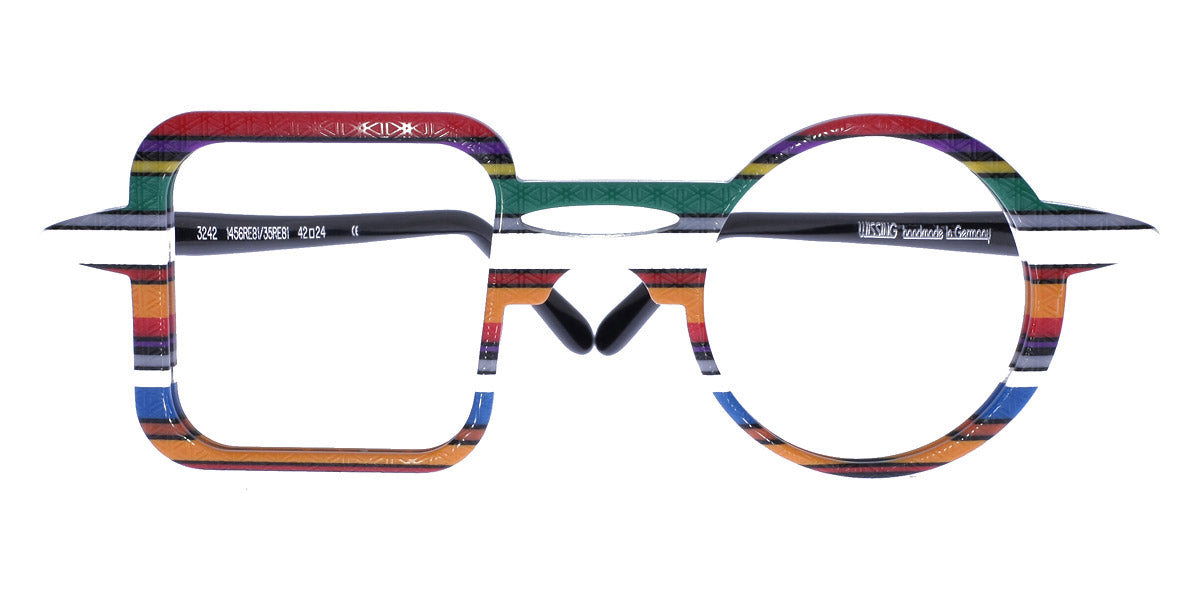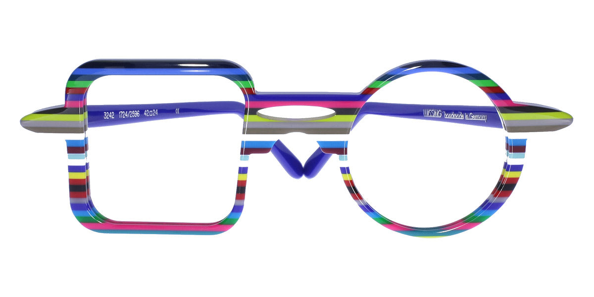 3242 Eyeglasses by Wissing . Boldness and exclusiveness are those distinguishing features that have always characterized Wissing. The reputed German brand creates one-off, unmistakable pieces of art, handcrafted from multi-layer acetate, which means endless possibilities for eyewear design. Each Wissing frame features a distinctive shape and comes offered in bright, eye-catching color combinations.