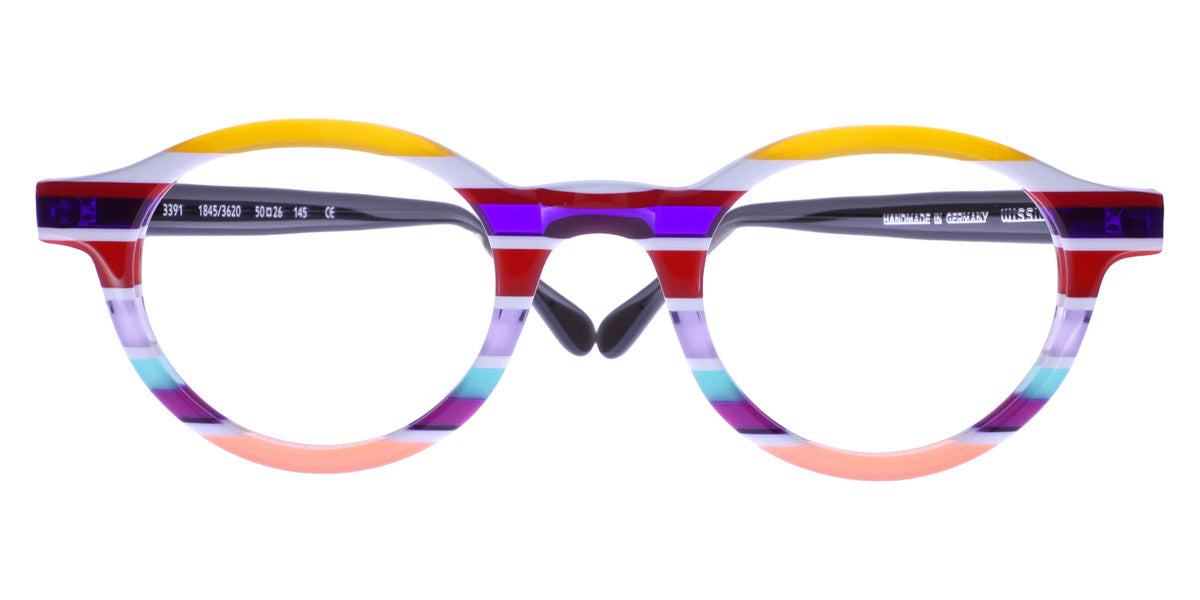 3391 Eyeglasses by Wissing . Boldness and exclusiveness are those distinguishing features that have always characterized Wissing. The reputed German brand creates one-off, unmistakable pieces of art, handcrafted from multi-layer acetate, which means endless possibilities for eyewear design. Each Wissing frame features a distinctive shape and comes offered in bright, eye-catching color combinations.