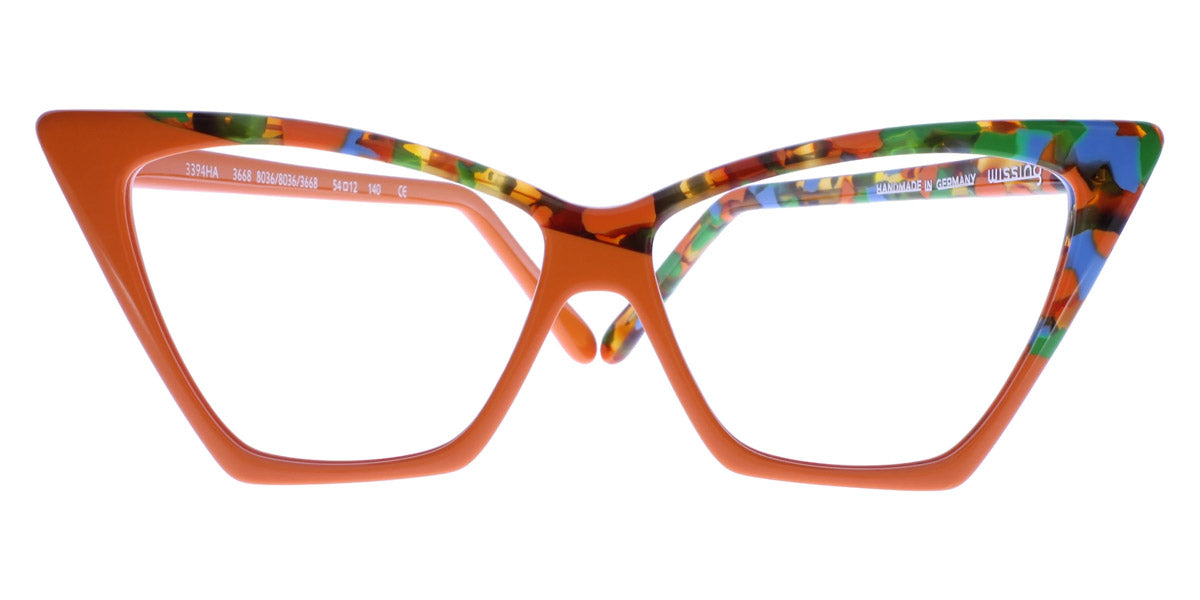 3394 Eyeglasses by Wissing . Boldness and exclusiveness are those distinguishing features that have always characterized Wissing. The reputed German brand creates one-off, unmistakable pieces of art, handcrafted from multi-layer acetate, which means endless possibilities for eyewear design. Each Wissing frame features a distinctive shape and comes offered in bright, eye-catching color combinations.